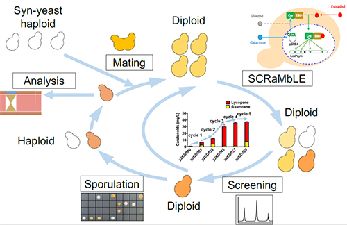 图1.精确控制合成型单倍体和二倍体酵母基因组重排