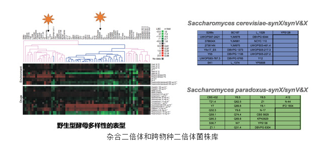 本研究通过酵母交配的方式将具有灵活基因型的合成型酵母与具有多样化表型的野生型酵母相结合,使得SCRaMbLE(Synthetic Chromosome Recombination and Modification by LoxP-Mediated Evolution)系统驱动杂合二倍体和跨物种二倍体的基因组重排。研究人员将包含单条合成型染色体(synX)和包含两条合成型染色体(synV和synX)的单倍体酵母与来自酵母菌株库(SGRP)中的25株酿酒酵母(Saccharomyces cerevisiae)和27株奇艺酵母(Saccharomyces paradoxus)单倍体交配,获得100株菌的杂合二倍体和跨物种二倍体菌株库。