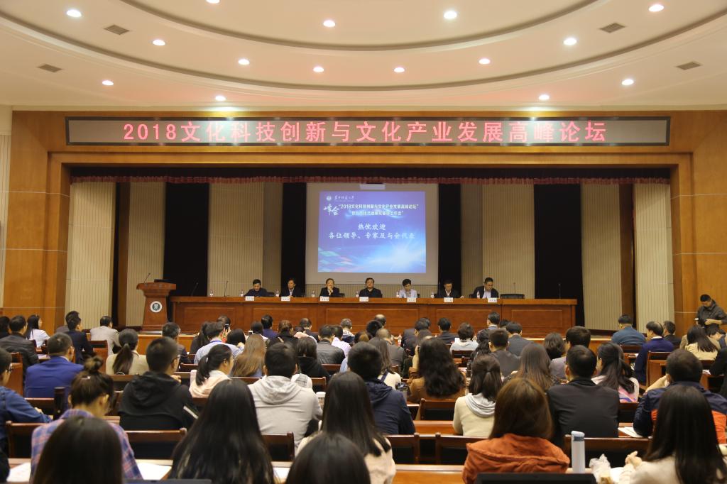 秋高气爽、丹桂飘香。10月24日,由中共武汉市委宣传部、华中师范大学主办,华中师范大学国家文化产业研究中心、武汉文化科技创新研究院承办的“2018文化科技创新与文化产业发展高峰论坛”暨“文化产业研究基地工作会”在华中师范大学科学会堂隆重举行。出席此次论坛开幕式的领导有中华文化促进会副主席、文化部文化产业司原司长王永章,湖北省文化厅党组成员、副厅长陶宏家,湖北省科技厅党组成员、副厅长彭泉,中共武汉市委宣传部副部长吴天勇,中共武汉市委宣传部改革发展办主任赵乐军,华中师范大学党委书记黄晓玫。本次论坛也邀请了中国科学院院士、中国工程院院士李德仁教授等文化产业领域的国内专家学者和国家文化产业研究中心20余个研究基地负责人、湖北文化科技融合技术创新战略联盟相关单位负责人、华中师范大学相关职能部门负责人和国家文化产业研究中心校内外兼职教师。
